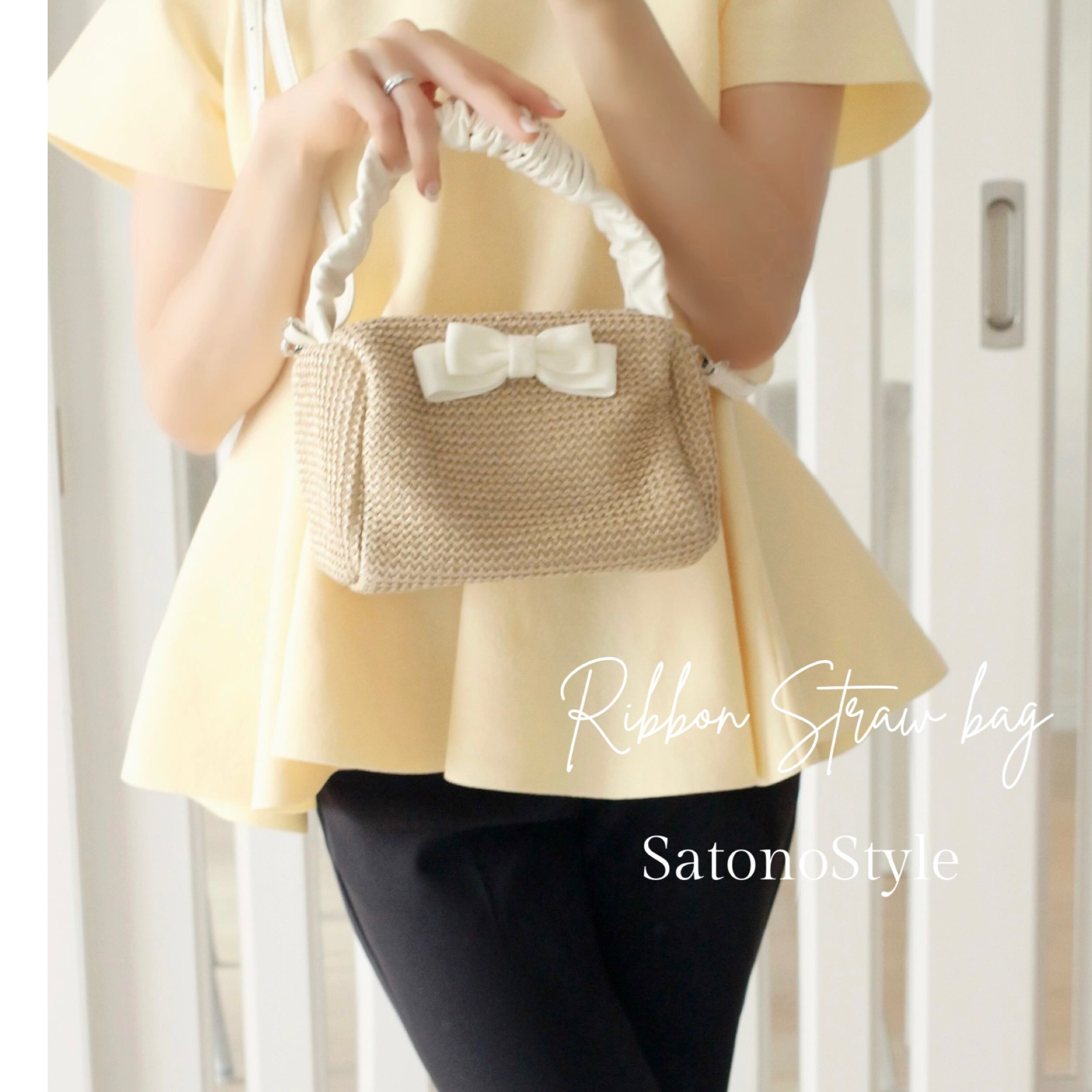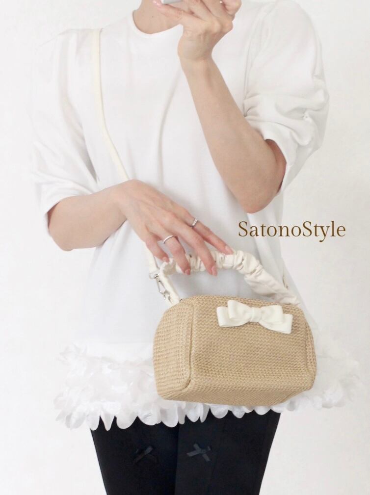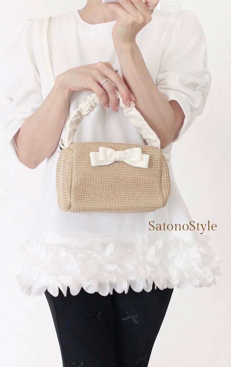 バッグの両面にリボンをつけて